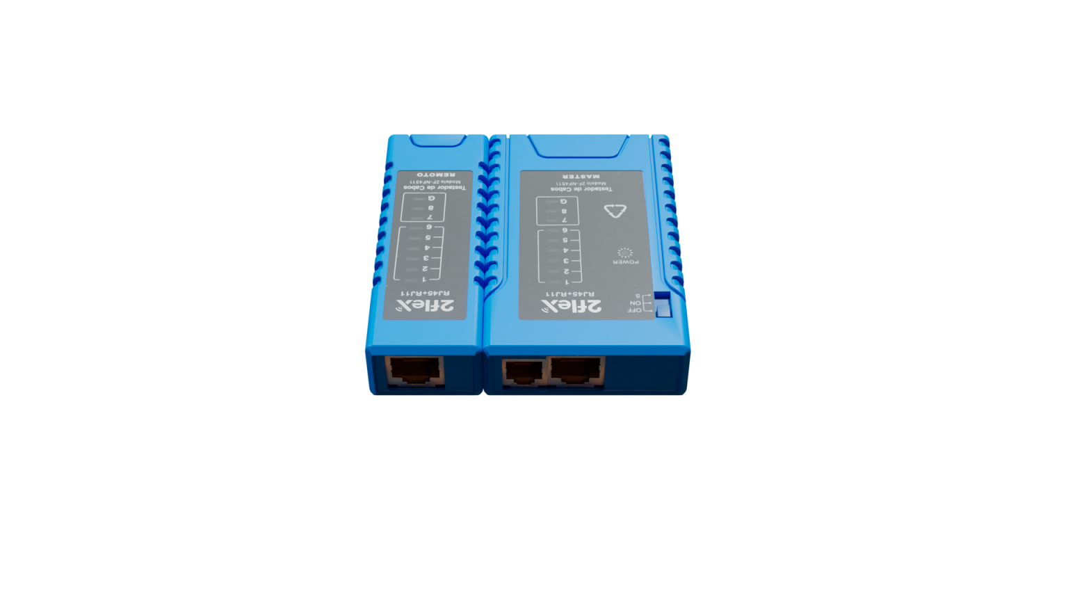 Testador de cabos RJ45 (2F-NF4511) possui um LED por cabo, que permite ao técnico rápida visualização dos cabos danificados ou partidos. Sendo possível conexão com o cabo RJ45 ou RJ11 para identificar possíveis falhas das vias. Feito com polipropileno e funcionamento plug-and-play simples.